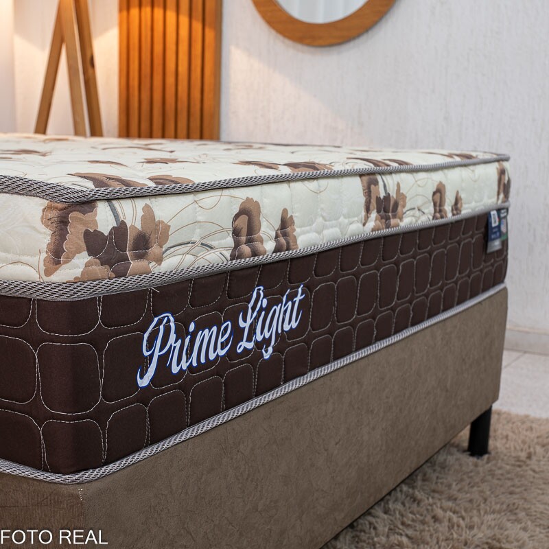 Box Casal Sued Marrom Nosso Sonho + Colchão Casal Prime Light Marrom 138x188x67 Molas Ensacadas Orthoprime | Suporta até 240kg