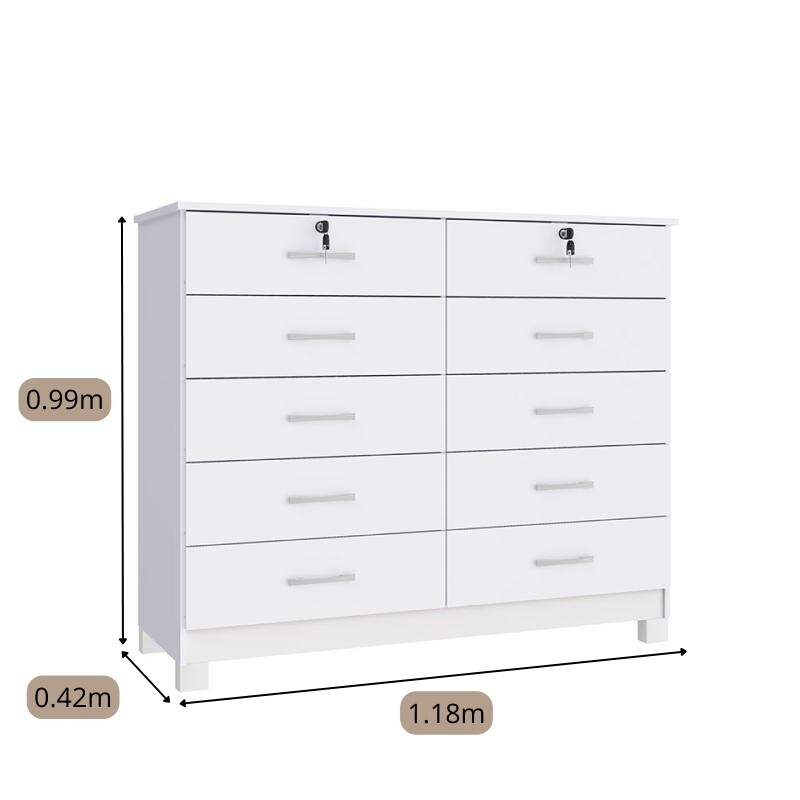 Cômoda Lucca Larg. 1.18m Branco 10 Gavetas C/Pés - San Marino R$ 511,00em até 10x de R$ 53,66 no cartão ou R$ 490,56 com 4% de desconto em dinheiro Comprar Novidade Oferta Cômoda Lucca Larg. 1.18m Branco 10 Gavetas C/Pés - San Marino EM ESTOQUE Referência: 2601434550 Restam apenas 6 unidades Fabricante: Faça Login/Cadastro para ter acesso ao preço deste produto. R$ 511,00em até 10x de R$ 53,66 no cartão ou R$ 490,56 com 4% de desconto em dinheiro Reservar Esse produto encontra-se indisponível. Deixe seu contato que avisaremos quando chegar. Seu nome: Seu e-mail: Desejo receber e-mails com lançamentos e promoções. Avise-me quando disponível Indicar este produto Descrição Cômoda Lucca Larg. 1.18m Branco 10 Gavetas C/Pés - San Marino Medidas:Largura: 1.18mProfundidade: 0.42mAltura: 0.99mCaracterística :- Produzido em MDP- Puxadores em PVC - 10 gavetas com corrediças metálicas- 02 gaveta com chave- Pés em PVC* As imagens dos produtos são meramente ilustrativas. As cores podem sofrer variações dependendo da luminosidade, tipo de câmera, ou mesmo a visualização das imagens em computadores ou notebooks com telas LCD ou LED, tablets ou smartphones dependendo da quantidade de pixls, podendo deixar as imagens com cores mais opacas ou cores mais vibrantes. Os objetos decorativos presentes na imagem não acompanham o produto.