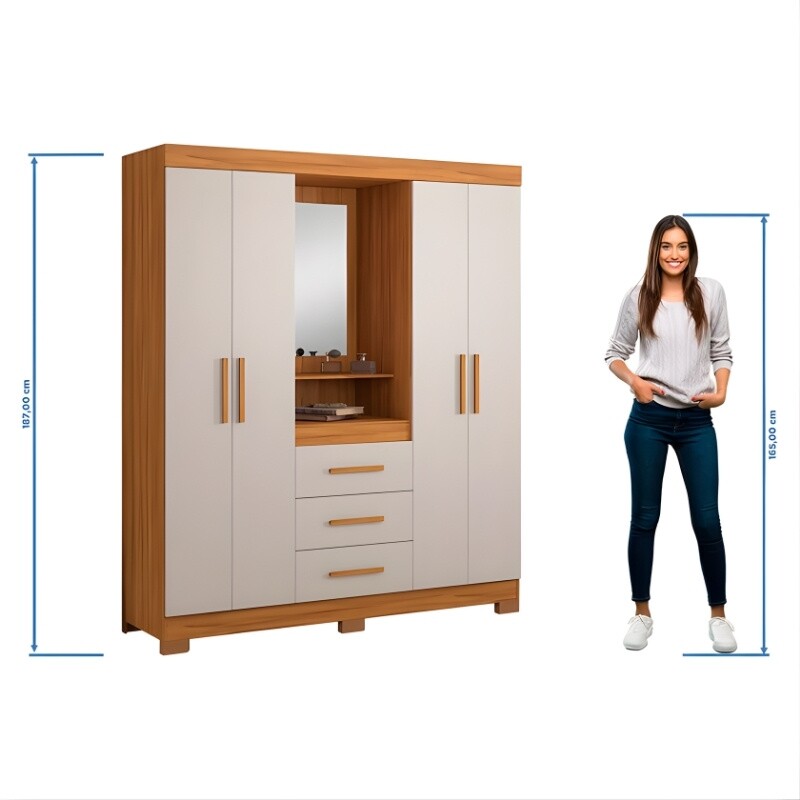 Roupeiro Solteiro NT 5015 Larg. 1.61m Freijó/Off 4 portas 3 Gavetas C/Pés - Notável R$ 640,00em até 10x de R$ 67,20 no cartão ou R$ 614,40 com 4% de desconto em dinheiro Comprar Roupeiro Solteiro NT 5015 Larg. 1.61m Freijó/Off 4 portas 3 Gavetas C/Pés - Notável Transforme seu espaço com o Roupeiro Solteiro Notável NT 5015. Com 4 portas, 3 gavetas e acabamento premium, ele é perfeito para organizar suas roupas com estilo e praticidade. EM ESTOQUE Referência: 290104053 Restam apenas 5 unidades Faça Login/Cadastro para ter acesso ao preço deste produto. R$ 640,00em até 10x de R$ 67,20 no cartão ou R$ 614,40 com 4% de desconto em dinheiro Reservar Esse produto encontra-se indisponível. Deixe seu contato que avisaremos quando chegar. Seu nome: Seu e-mail: Desejo receber e-mails com lançamentos e promoções. Avise-me quando disponível Indicar este produto Descrição Roupeiro Solteiro NT 5015 Larg. 1.61m Freijó/Off 4 portas 3 Gavetas C/Pés - NotávelMedidas:Largura: 1.61 mProfundidade: 0.45 mAltura: 1.88 mCaracterísticas:- Estrutura: MDP- Suporta até 29 Kg- 3 gavetas externas com corrediça metálica- Acabamento em impressão de alta qualidade- Puxador em MDF- 4 prateleiras interna- 1 cabideiro em madeira- 1 espelho- Pés em PVC* As imagens dos produtos são meramente ilustrativas. As cores podem sofrer variações dependendo da luminosidade, tipo de câmera, ou mesmo a visualização das imagens em computadores ou notebooks com telas LCD ou LED, tablets ou smartphones dependendo da quantidade de pixls, podendo deixar as imagens com cores mais opacas ou cores mais vibrantes. Os objetos decorativos presentes na imagem não acompanham o produto.
