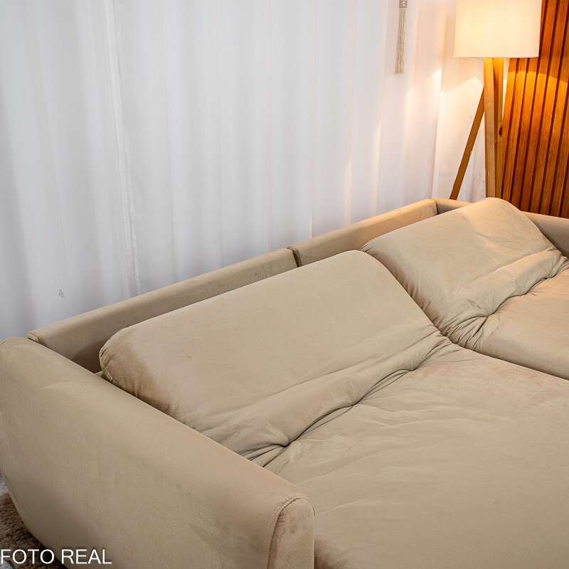 Esse modelo une conforto, praticidade e um visual elegante em um único produto. Com 2,30 metros de largura, ele acomoda bem até 4 pessoas e ainda vira uma cama espaçosa de 2,05x1,45m. ideal para receber visitas ou relaxar assistindo TV. Seu assento retrátil com pillow de 17cm e molas bonnel garante conforto mesmo por longas horas, e o encosto reclinável com almofadas soltas oferece aquele apoio extra para o corpo.