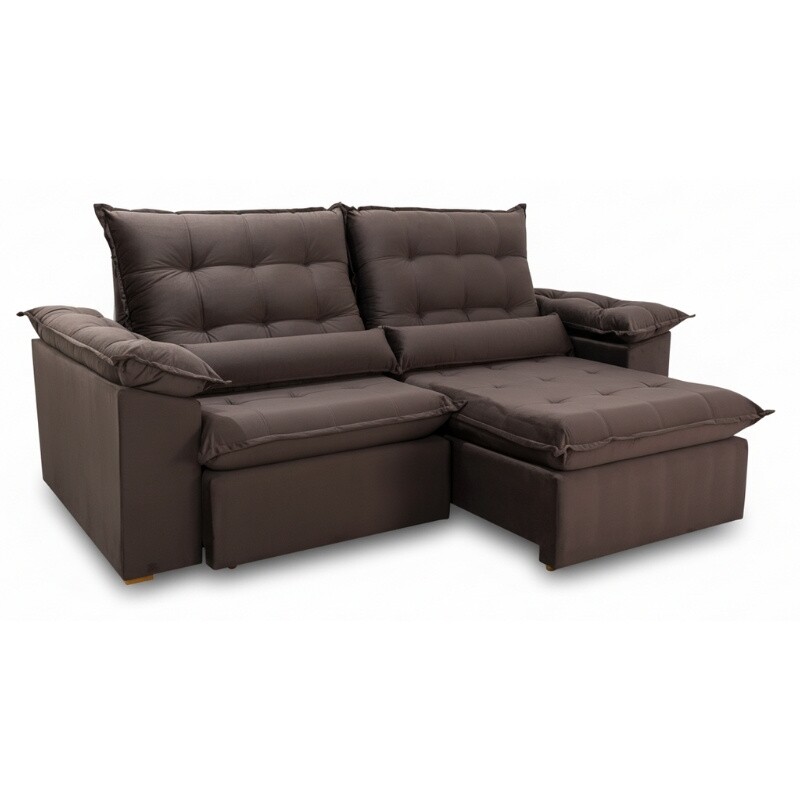 Sofá Retrátil Reclinável Emanuelly 2.00m Veludo Marrom 19 - D28 Soft R$ 1.442,00em até 10x de R$ 151,41 no cartão ou R$ 1.384,32 com 4% de desconto em dinheiro Comprar Sofá Retrátil Reclinável Emanuelly 2.00m Veludo Marrom 19 - D28 Soft Assista ao vídeo X EM ESTOQUE Referência: 060568007 Restam apenas 1 unidades Faça Login/Cadastro para ter acesso ao preço deste produto. R$ 1.442,00em até 10x de R$ 151,41 no cartão ou R$ 1.384,32 com 4% de desconto em dinheiro Reservar Esse produto encontra-se indisponível. Deixe seu contato que avisaremos quando chegar. Seu nome: Seu e-mail: Desejo receber e-mails com lançamentos e promoções. Avise-me quando disponível Indicar este produto Descrição Sofá Retrátil Reclinável Emanuelly 2.00m Veludo Marrom 19 - D28 SoftMedidas:Largura: 2.00mAssento fechado: 1.06mAssento aberto: 1.56mAltura: 1.12mSofá retrátil 4 lugaresAssento:- Tipo: Retrátil com corrediças em tubo de ferro- Pillow Top: 18 cm de espessura- Espuma: D28 Soft de alta densidade- Sustentação: Percintas elásticas de alta resistência + molas bonnel- Rodízios: Rodinhas siliconadas que facilitam o deslizamentoEncosto:- Tipo de encosto: Reclinável com várias posições- Enchimento: Fibra de poliéster siliconado de alto conforto- Sistema de inclinação: Catraca de ferro blindadoBraços:- Pillow Top com fibras siliconadasEstrutura:- Tipo de madeira: Eucalipto de reflorestamentoRevestimento:- Tecido: VeludoPeso indicado:- Recomendado até 120 kg por pessoaBônus:- Acompanha almofadas decorativasAviso importante:Informamos que é normal haver uma abertura entre os módulos dos sofás retráteis. Essa abertura é necessária para evitar atrito entre os módulos durante o movimento de abrir e fechar, prevenindo o desgaste do tecido.As cores podem sofrer variações dependendo da luminosidade, tipo de câmera, ou mesmo a visualização das imagens em computadores ou notebooks com telas LCD ou LED, tablets ou smartphones dependendo da quantidade de pixls, podendo deixar as imagens com cores mais opacas ou cores mais vibrantes. Vídeo