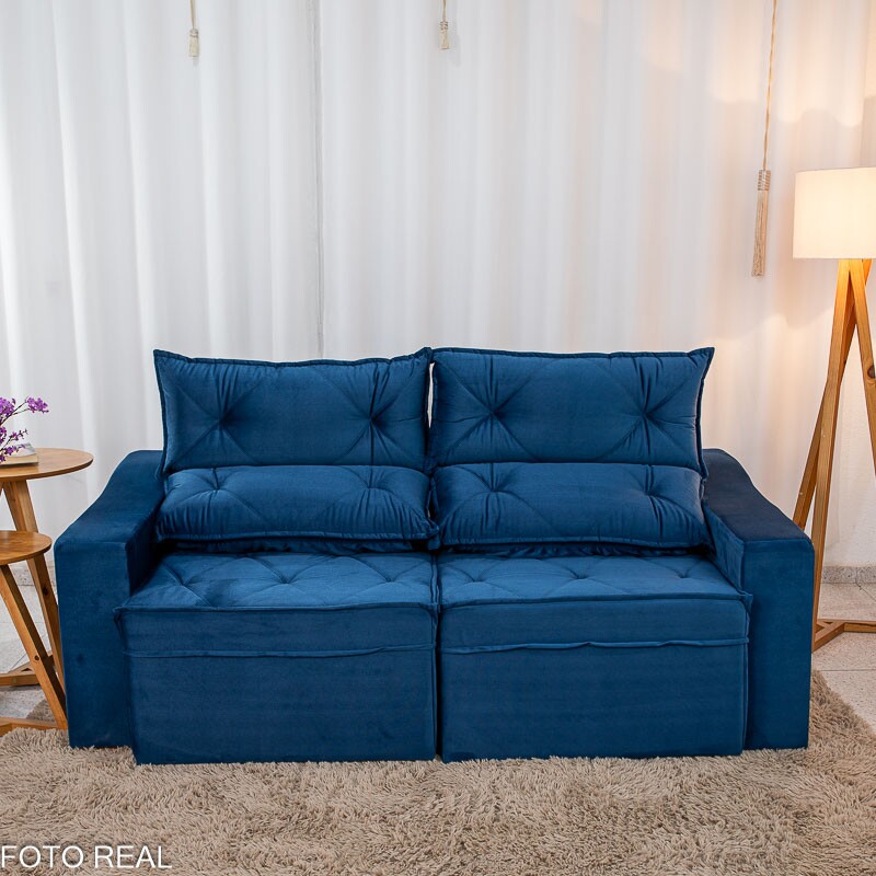 Sofá Retrátil Reclinável Moscou 2.00m Veludo Azul A16 R$ 1.212,00em até 10x de R$ 127,26 no cartão ou R$ 1.163,52 com 4% de desconto em dinheiro Comprar Novidade Oferta Sofá Retrátil Reclinável Moscou 2.00m Veludo Azul A16 EM ESTOQUE Referência: 060302307 Restam apenas 8 unidades Faça Login/Cadastro para ter acesso ao preço deste produto. R$ 1.212,00em até 10x de R$ 127,26 no cartão ou R$ 1.163,52 com 4% de desconto em dinheiro Reservar Esse produto encontra-se indisponível. Deixe seu contato que avisaremos quando chegar. Seu nome: Seu e-mail: Desejo receber e-mails com lançamentos e promoções. Avise-me quando disponível Indicar este produto Descrição Sofá Retrátil Reclinável Moscou 2.00m Veludo Azul A16Medidas:- Largura: 2.00m- Assento fechado: 1.05m- Assento aberto: 1.60m- Altura: 1.05m- Largura braço: 20cm- Altura do assento até o chão: 46cm- Passa em portas de 70cmAssento:- Tipo: Retrátil- Espuma: D28- Sustentação: Molas Bonnel + Percintas elásticas de alta resistência- Rodízios: Rodinhas siliconadas que facilitam o deslizamentoEncosto:- Tipo de encosto: Reclinável com várias posições- Enchimento: Flocos de espuma- Sistema de inclinação: Catraca de ferroBraços:- Linha reta com espuma D26Estrutura:- Tipo de madeira: Eucalipto de reflorestamentoRevestimento:- Tecido: VeludoPeso indicado:- Recomendado até 110 kg por pessoaAviso importante:Informamos que é normal haver uma abertura entre os módulos dos sofás retráteis. Essa abertura é necessária para evitar atrito entre os módulos durante o movimento de abrir e fechar, prevenindo o desgaste do tecido.