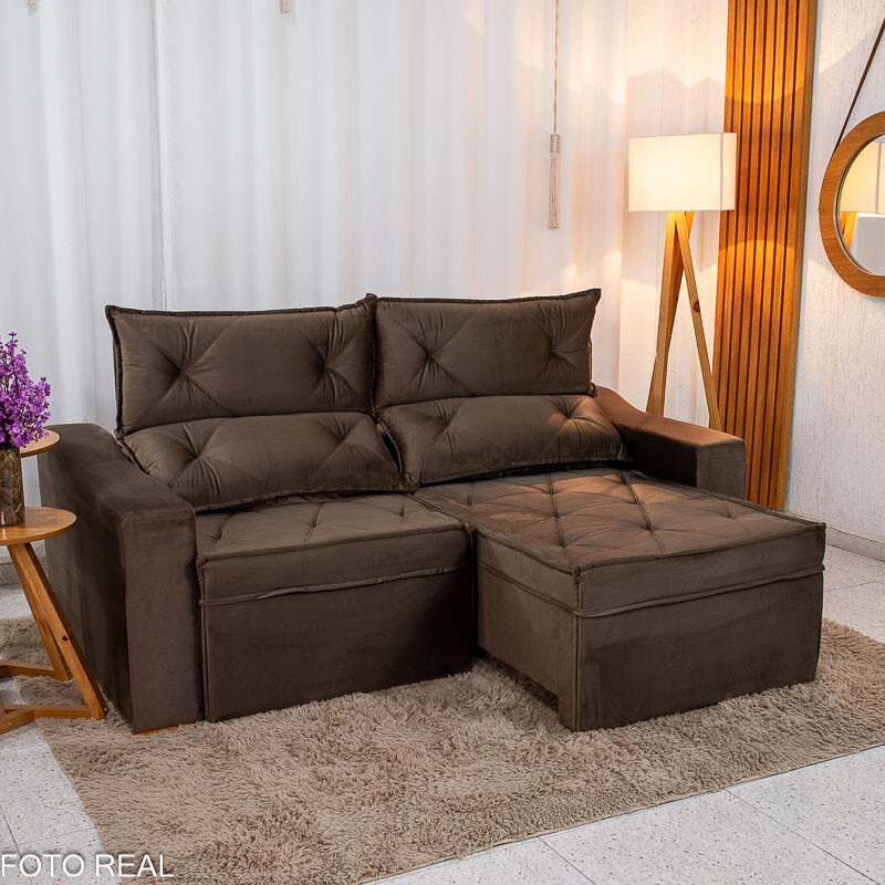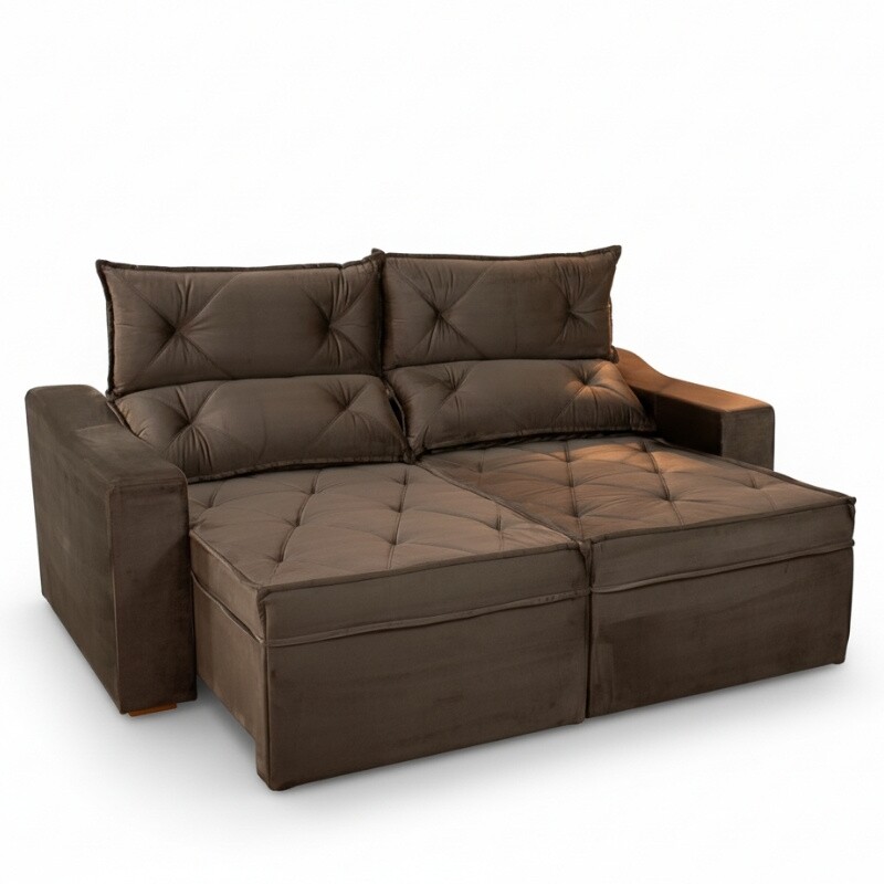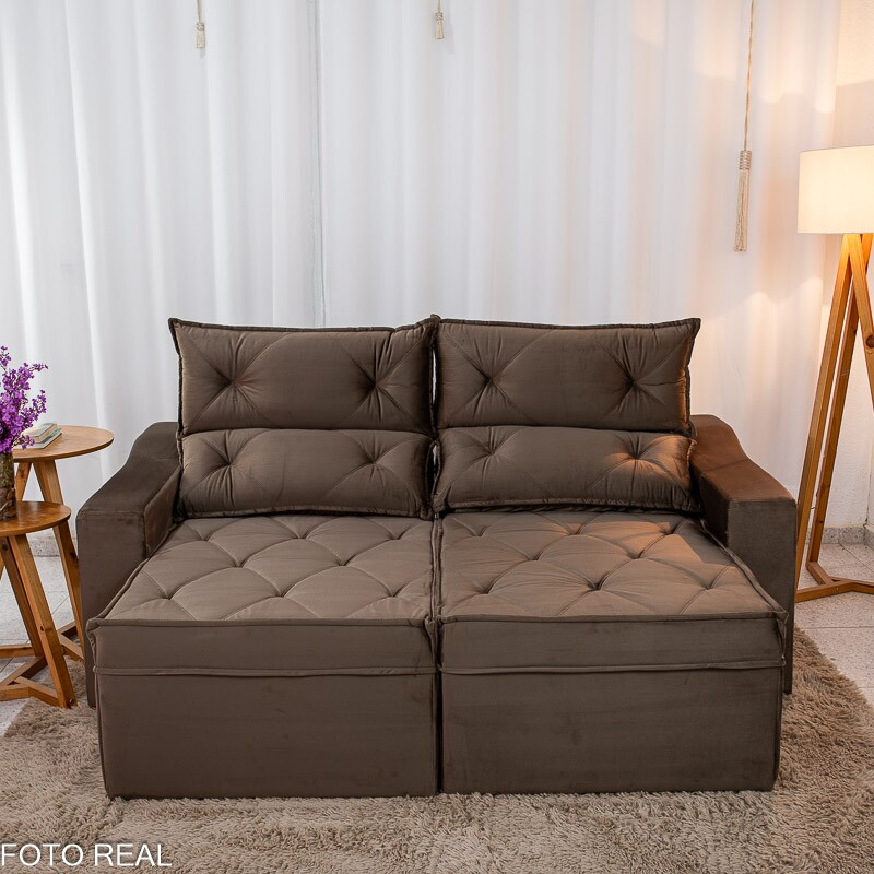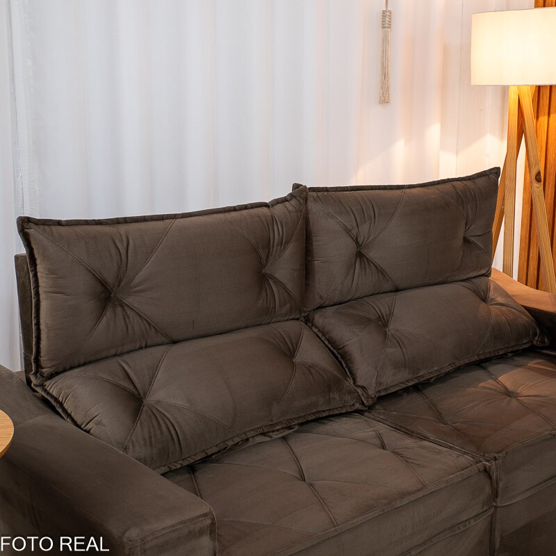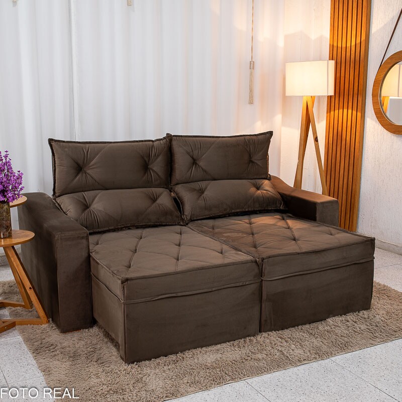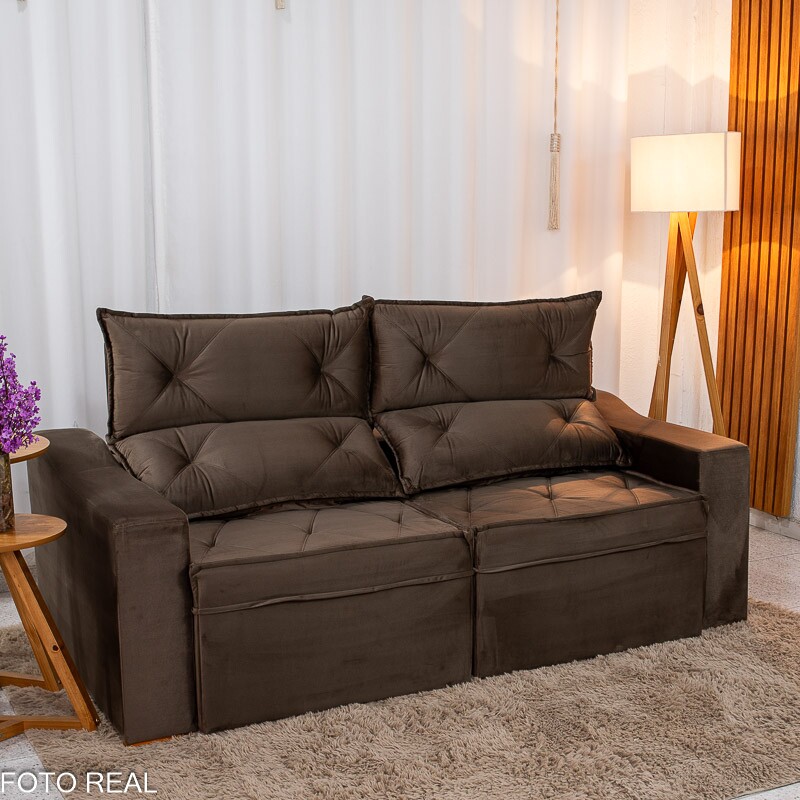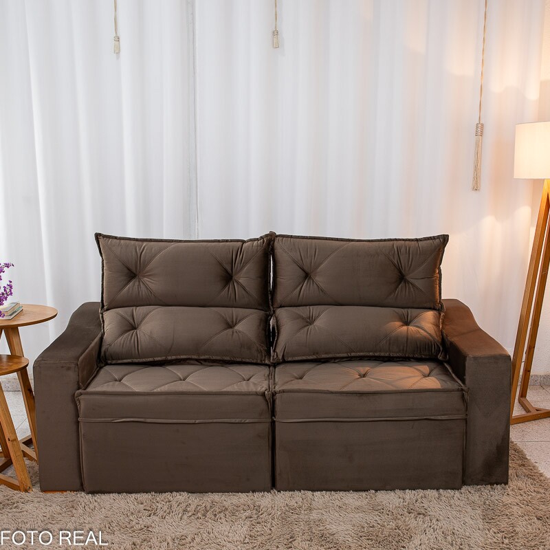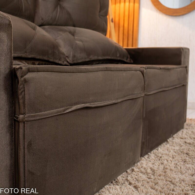 Sofá Retrátil Reclinável Moscou 2.00m Veludo Marrom A17 R$ 1.212,00em até 10x de R$ 127,26 no cartão ou R$ 1.163,52 com 4% de desconto em dinheiro Comprar Novidade Oferta Sofá Retrátil Reclinável Moscou 2.00m Veludo Marrom A17 EM ESTOQUE Referência: 060302321 Restam apenas 7 unidades Faça Login/Cadastro para ter acesso ao preço deste produto. R$ 1.212,00em até 10x de R$ 127,26 no cartão ou R$ 1.163,52 com 4% de desconto em dinheiro Reservar Esse produto encontra-se indisponível. Deixe seu contato que avisaremos quando chegar. Seu nome: Seu e-mail: Desejo receber e-mails com lançamentos e promoções. Avise-me quando disponível Indicar este produto Descrição Sofá Retrátil Reclinável Moscou 2.00m Veludo Marrom A17Medidas:- Largura: 2.00m- Assento fechado: 1.05m- Assento aberto: 1.60m- Altura: 1.05m- Largura braço: 20cm- Altura do assento até o chão: 46cm- Passa em portas de 70cmAssento:- Tipo: Retrátil- Espuma: D28- Sustentação: Molas Bonnel + Percintas elásticas de alta resistência- Rodízios: Rodinhas siliconadas que facilitam o deslizamentoEncosto:- Tipo de encosto: Reclinável com várias posições- Enchimento: Flocos de espuma- Sistema de inclinação: Catraca de ferroBraços:- Linha reta com espuma D26Estrutura:- Tipo de madeira: Eucalipto de reflorestamentoRevestimento:- Tecido: VeludoPeso indicado:- Recomendado até 110 kg por pessoaAviso importante:Informamos que é normal haver uma abertura entre os módulos dos sofás retráteis. Essa abertura é necessária para evitar atrito entre os módulos durante o movimento de abrir e fechar, prevenindo o desgaste do tecido.