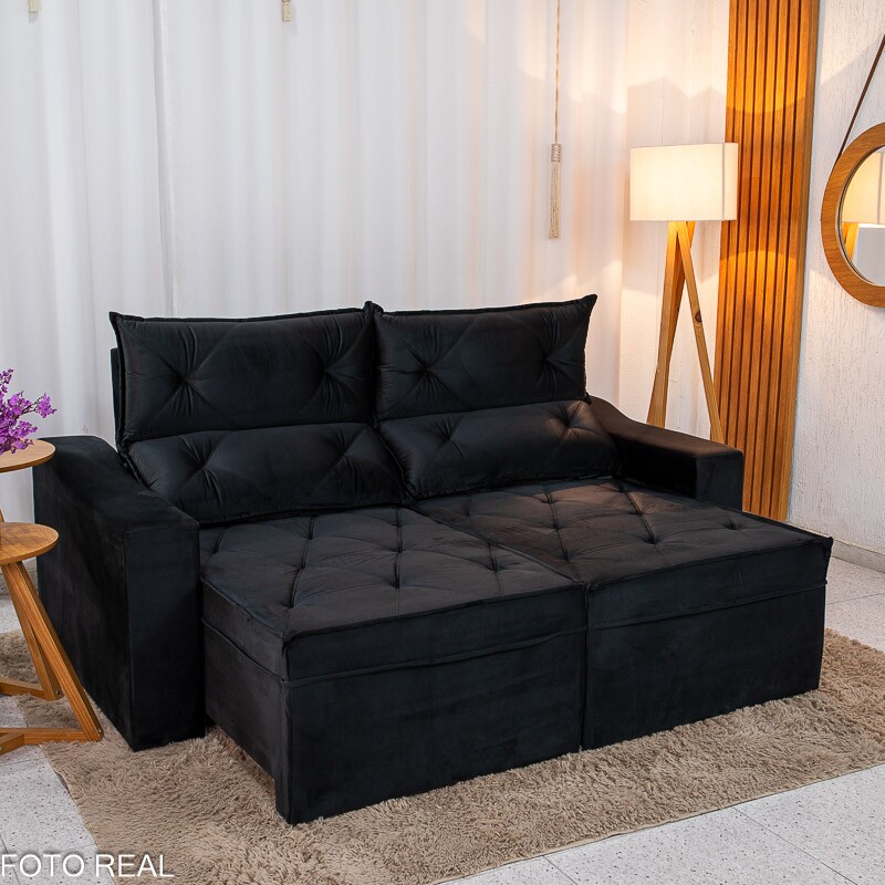 Sofá Retrátil Reclinável Moscou 2.00m Veludo Preto A14 R$ 1.212,00em até 10x de R$ 127,26 no cartão ou R$ 1.163,52 com 4% de desconto em dinheiro Comprar Novidade Oferta Sofá Retrátil Reclinável Moscou 2.00m Veludo Preto A14 EM ESTOQUE Referência: 060304112 Quantidade em estoque: 10 unidades Faça Login/Cadastro para ter acesso ao preço deste produto. R$ 1.212,00em até 10x de R$ 127,26 no cartão ou R$ 1.163,52 com 4% de desconto em dinheiro Reservar Esse produto encontra-se indisponível. Deixe seu contato que avisaremos quando chegar. Seu nome: Seu e-mail: Desejo receber e-mails com lançamentos e promoções. Avise-me quando disponível Indicar este produto Descrição Sofá Retrátil Reclinável Moscou 2.00m Veludo Preto A14Medidas:- Largura: 2.00m- Assento fechado: 1.05m- Assento aberto: 1.60m- Altura: 1.05m- Largura braço: 20cm- Altura do assento até o chão: 46cm- Passa em portas de 70cmAssento:- Tipo: Retrátil- Espuma: D28- Sustentação: Molas Bonnel + Percintas elásticas de alta resistência- Rodízios: Rodinhas siliconadas que facilitam o deslizamentoEncosto:- Tipo de encosto: Reclinável com várias posições- Enchimento: Flocos de espuma- Sistema de inclinação: Catraca de ferroBraços:- Linha reta com espuma D26Estrutura:- Tipo de madeira: Eucalipto de reflorestamentoRevestimento:- Tecido: VeludoPeso indicado:- Recomendado até 110 kg por pessoaAviso importante:Informamos que é normal haver uma abertura entre os módulos dos sofás retráteis. Essa abertura é necessária para evitar atrito entre os módulos durante o movimento de abrir e fechar, prevenindo o desgaste do tecido.