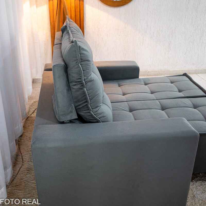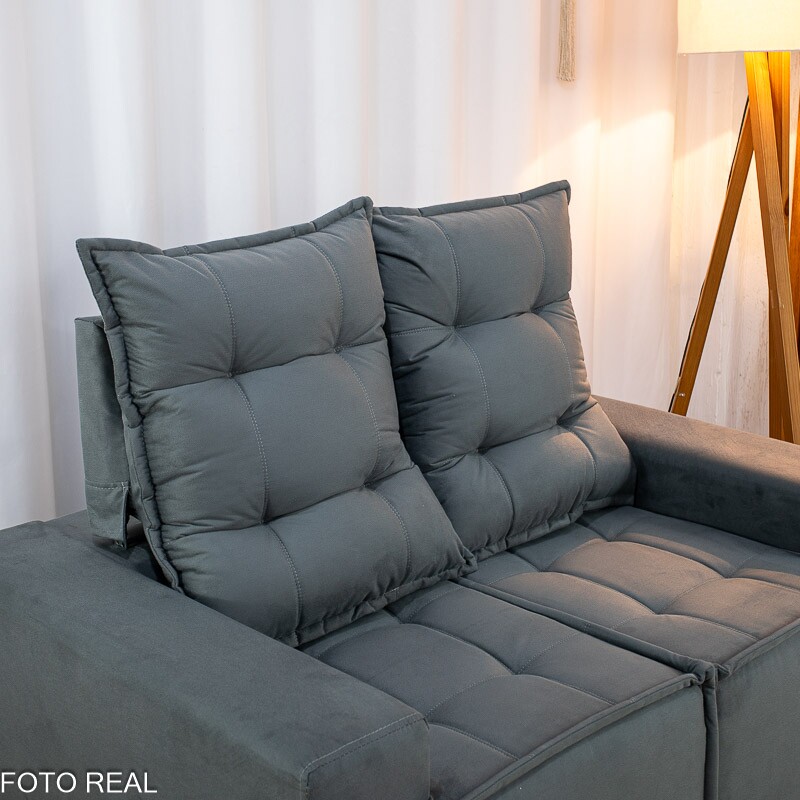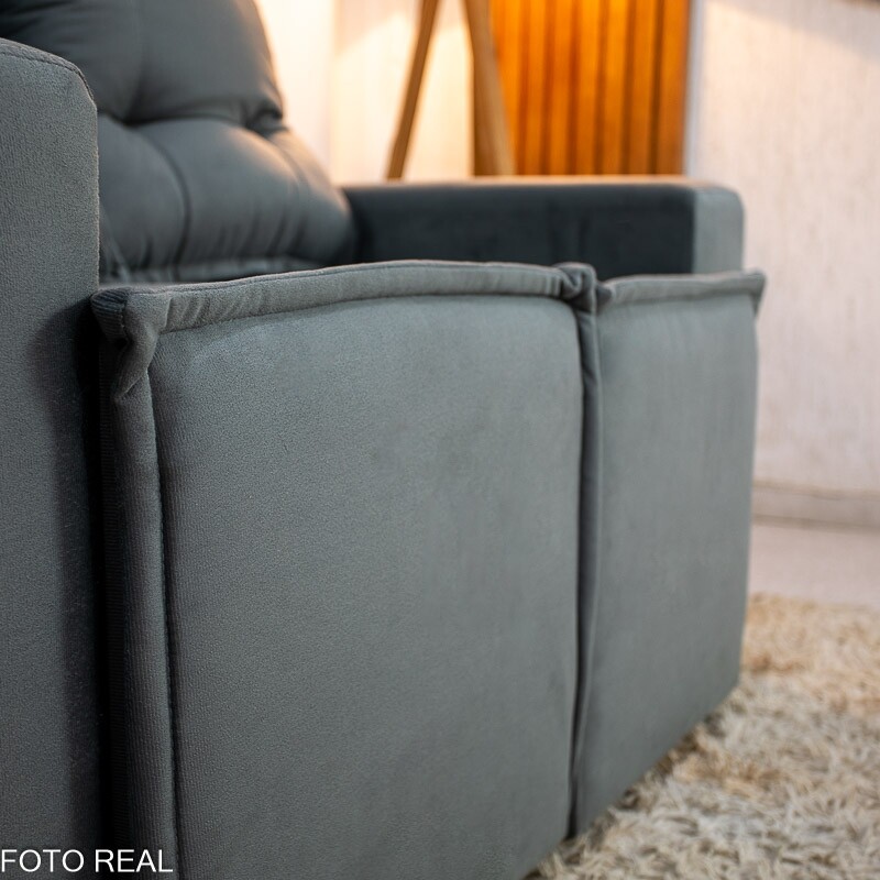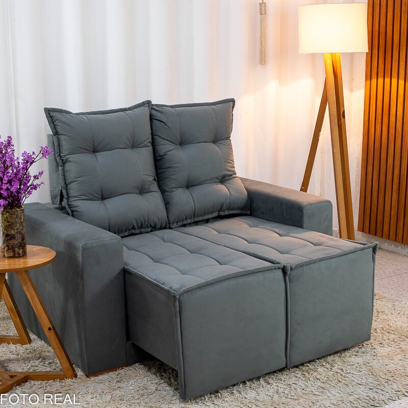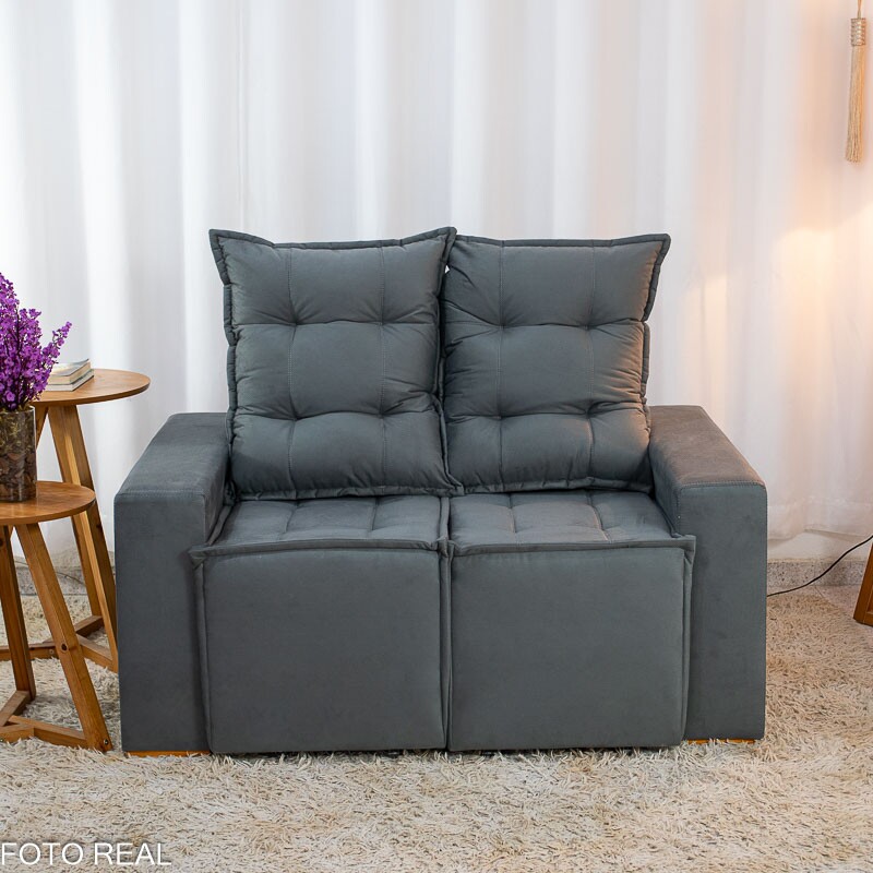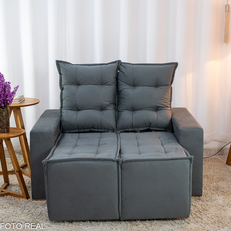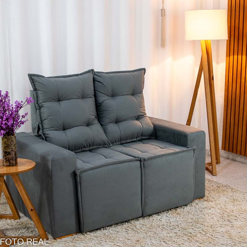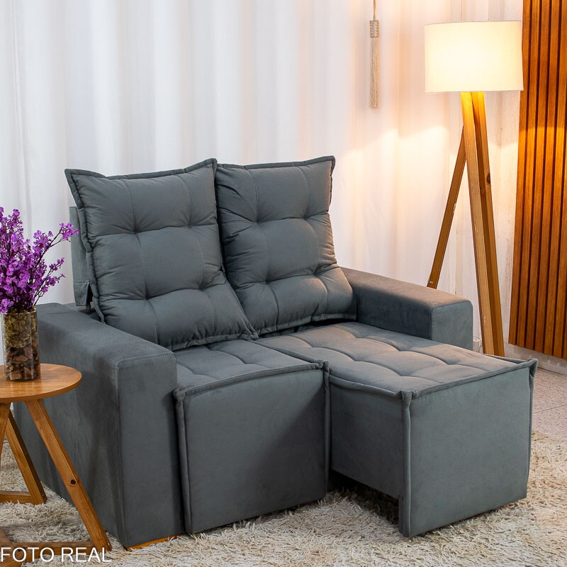 Sofá Retrátil Reclinável Rafaela 1.40m Veludinho Cinza A15 R$ 797,00em até 10x de R$ 83,69 no cartão ou R$ 765,12 com 4% de desconto em dinheiro Comprar Sofá Retrátil Reclinável Rafaela 1.40m Veludinho Cinza A15 Descubra o sofá retrátil reclinável Rafaela, ideal para espaços modernos. Com design elegante em veludinho cinza, oferece conforto superior e praticidade. Perfeito para relaxar e receber amigos. Assista ao vídeo X EM ESTOQUE Referência: 060300309 Restam apenas 3 unidades Faça Login/Cadastro para ter acesso ao preço deste produto. R$ 797,00em até 10x de R$ 83,69 no cartão ou R$ 765,12 com 4% de desconto em dinheiro Reservar Esse produto encontra-se indisponível. Deixe seu contato que avisaremos quando chegar. Seu nome: Seu e-mail: Desejo receber e-mails com lançamentos e promoções. Avise-me quando disponível Indicar este produto Descrição Sofá Retrátil Reclinável Rafaela 1.40m Veludinho Cinza A15Medidas:- Largura: 1.40m- Altura: 1.06m- Assento fechado: 0.98m- Assento aberto: 1.40m- Altura do assento até o chão: 0.47m- Sofá retrátil para até 2 pessoas- Passa em portas de 0.75mAssento:- Tipo: Retrátil com corrediças em tubo de ferro- Espuma: D28- Sustentação: Percintas elásticas de alta resistência + molas bonnel- Rodízios: Rodinhas siliconadas que facilitam o deslizamentoEncosto:- Tipo de encosto: Reclinável com várias posições- Enchimento: Fibra de poliéster siliconado de alto conforto- Sistema de inclinação: Catraca de ferroBraços:- Linha retaEstrutura:- Tipo de madeira: Eucalipto de reflorestamentoRevestimento:- Tecido: VeludinhoPeso indicado:- Recomendado até 120 kg por pessoaAviso importante:Informamos que é normal haver uma abertura entre os módulos dos sofás retráteis. Essa abertura é necessária para evitar atrito entre os módulos durante o movimento de abrir e fechar, prevenindo o desgaste do tecido.As cores podem sofrer variações dependendo da luminosidade, tipo de câmera, ou mesmo a visualização das imagens em computadores ou notebooks com telas LCD ou LED, tablets ou smartphones dependendo da quantidade de pixls, podendo deixar as imagens com cores mais opacas ou cores mais vibrantes.