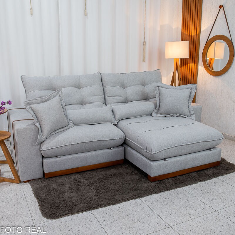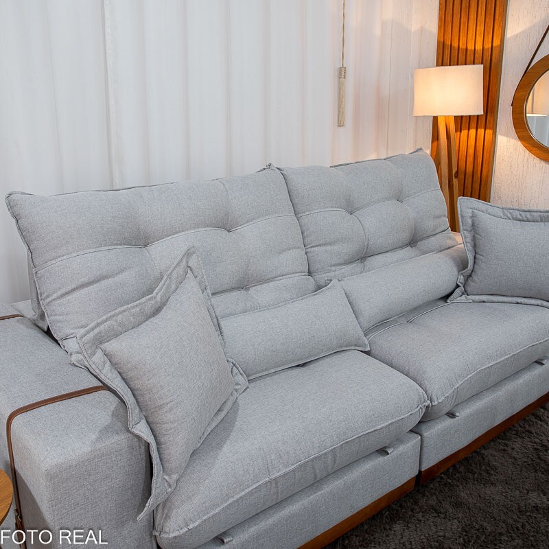 Sofá Retrátil Reclinável Toronto 2.50m Linho Cinza 2005 - Molas Ensacadas R$ 2.180,00em até 10x de R$ 228,90 no cartão ou R$ 2.092,80 com 4% de desconto em dinheiro Comprar Sofá Retrátil Reclinável Toronto 2.50m Linho Cinza 2005 - Molas Ensacadas Assista ao vídeo X EM ESTOQUE Referência: 061074418 Restam apenas 2 unidades Faça Login/Cadastro para ter acesso ao preço deste produto. R$ 2.180,00em até 10x de R$ 228,90 no cartão ou R$ 2.092,80 com 4% de desconto em dinheiro Reservar Esse produto encontra-se indisponível. Deixe seu contato que avisaremos quando chegar. Seu nome: Seu e-mail: Desejo receber e-mails com lançamentos e promoções. Avise-me quando disponível Indicar este produto Descrição Sofá Retrátil Reclinável Toronto 2.50m Linho Cinza 2005 - Molas EnsacadasMedidas:- Largura: 2.50m- Altura: 1.17m- Assento fechado: 1.20m- Assento aberto: 1.85m- Altura do assento até o chão: 0.50m- Largura dos braços: 0.25m- Sofá retrátil para até 5 pessoas- Passa em portas de 0.75mAssento:- Tipo: Retrátil com corrediças em tubo de ferro- Pillow Top: 28 cm de espessura com molas ensacadas- Espuma: D33 Alta Densidade- Sustentação: Percintas elásticas de alta resistência + molas bonnel- Rodízios: Rodinhas siliconadas que facilitam o deslizamento- Detalhe em madeira na baseEncosto:- Tipo de encosto: Reclinável com várias posições- Enchimento: Fibra de poliéster siliconado de alto conforto- Sistema de inclinação: Catraca de ferro blindadoBraços:- Linha retas;- Cinto decorativo de couro.Estrutura:- Tipo de madeira: Eucalipto de reflorestamentoRevestimento:- Tecido: LinhoPeso indicado:- Recomendado até 140 kg por pessoaBônus:- Acompanha duas almofadas decorativas é duas rineirasAviso importante:Informamos que é normal haver uma abertura entre os módulos dos sofás retráteis. Essa abertura é necessária para evitar atrito entre os módulos durante o movimento de abrir e fechar, prevenindo o desgaste do tecido.As cores podem sofrer variações dependendo da luminosidade, tipo de câmera, ou mesmo a visualização das imagens em computadores ou notebooks com telas LCD ou LED, tablets ou smartphones dependendo da quantidade de pixls, podendo deixar as imagens com cores mais opacas ou cores mais vibrantes.